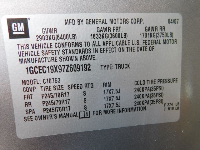 Vehicle Inquiry for 2007 Chevrolet Silverado 1500 2WD Ext Cab 143.5" Work Truck